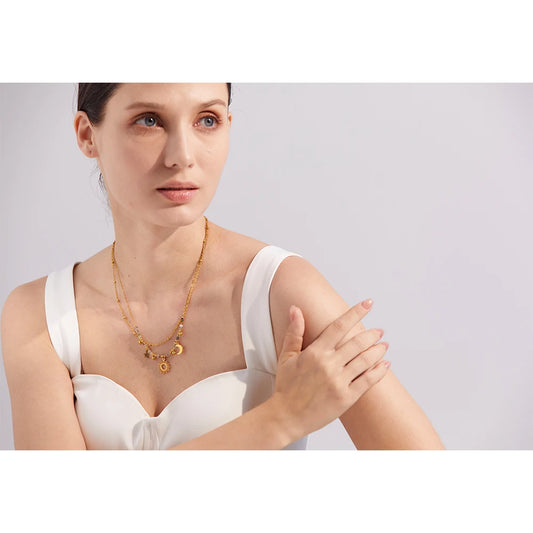 Natural Stone Beads Double Chain Necklace